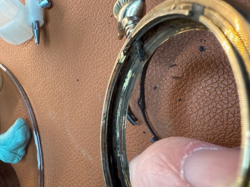 There is some corrosion inside the case which needs to be addressed and a new bow which matches the colour of the case would be nice.